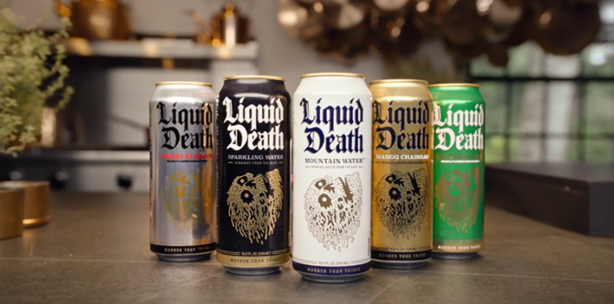 Liquid Death의 독특함 - Liquid Death는 '죽음을 담은 물'이라는 파격적인 컨셉으로 등장했다. 독특한 캔 디자인과 도발적인 마케팅 메시지를 통해 사람들의 관심을 끌었다.