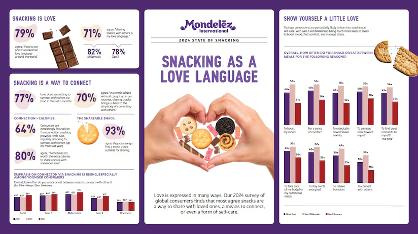몬델리즈 인터내셔널의 2024년 스낵 현황 보고서는 단순한 소비 트렌드를 넘어 우리 사회의 정서적 지형도가 어떻게 변화하고 있는지를 생생하게 보여주는 문화적 지표이다. 전 세계 소비자의 71%가 간식을 '사랑의 언어'로 인식한다는 사실은 단순한 통계 이상의 의미를 내포하고 있다. 이는 2021년 대비 15%나 증가한 수치로, 간식이 더 이상 배고픔을 달래는 수단이 아닌 감정적 교류와 자기 위안의 매개체로 진화했음을 시사한다.