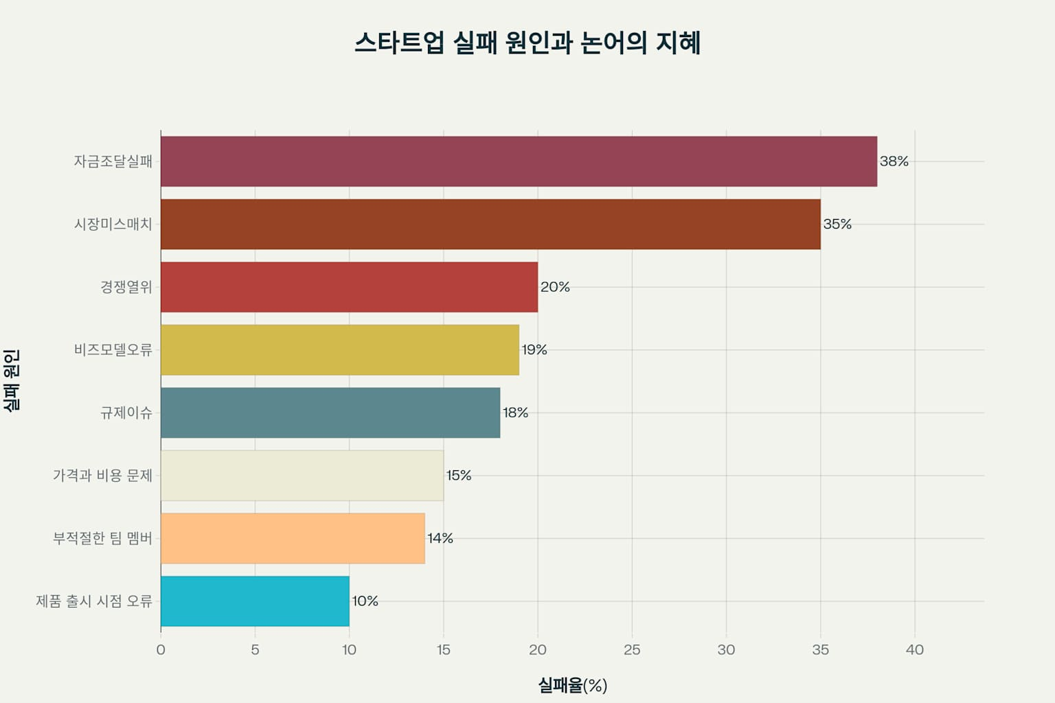 스타트업 실패 원인과 논어의 지혜를 연결한 분석 차트