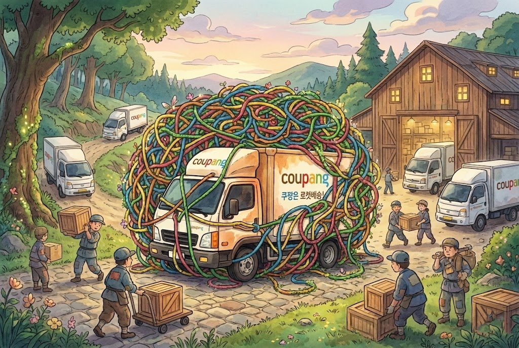 앞서 언급한 ‘알고리즘 감옥’은 쿠팡이 수년에 걸쳐 체계적으로 구축한 책임 회피의 구조 위에서만 효과적으로 작동한다. 과거 직접 고용 형태의 ‘쿠팡맨’ 시절과 달리, 쿠팡은 자회사인 쿠팡로지스틱스서비스(CLS)와 하청 대리점, 그리고 개인사업자 신분인 특수고용직으로 이어지는 다단계 간접고용 구조를 완성했다.