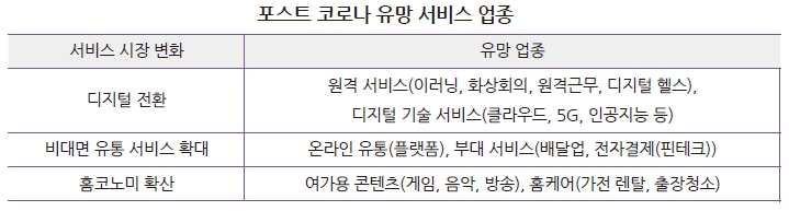 - 교육, 보건 관련 원격 산업은 코로나19를 통해 새로운 유망 업종으로 주목 받음