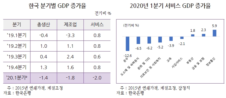 ● 올해 1분기 서비스업 GDP는 전기 대비 2.0% 감소하면서 제조업(1.8% 감소)에 비해 경제적