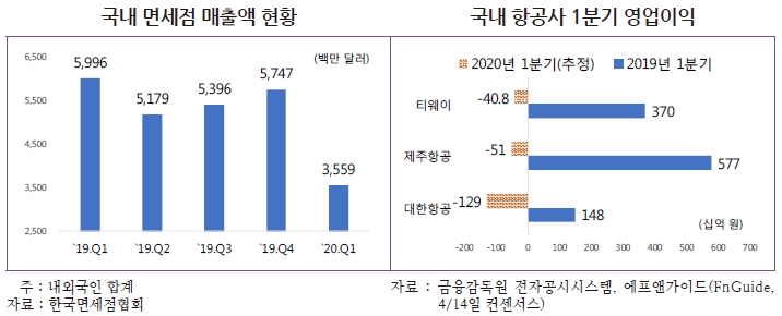 ● 글로벌 이동제한으로 외국인 입국 및 내국인 출국이 동시에 감소하면서 1분기 면세점 매출액은