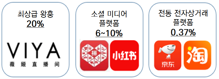 소셜 라이브 마케팅은 최근 중국시장에서 가장 주목받는 쇼핑채널이다. 전통 전자상거래 플랫폼의 조회수 대비 구매 전환율은 0.37%에 불과한 데 반해 소셜 미디어 플랫폼은 6~10%, 최상급의 왕훙(网红, 온라인 유명인)이 라이브로 방송을 진행하면 구매전환율이 20%에 달하기 때문이다. 업계는 소셜 라이브 커머스가 화장품, 특히 색조화장품의 주요 쇼핑 채널로 자리 잡을 것으로 내다보고 있다.