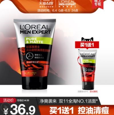 톈마오(天猫)를 통해 판매되는 남성 화장품 중 50여 종이 월 매출 1만 위안 이상을 기록했으며, 특히 로레알 화산암 클렌징 크림(欧莱雅男士火山岩控油洗面奶)은 한 달간 19만 건이 판매된 것으로 나타났다.
