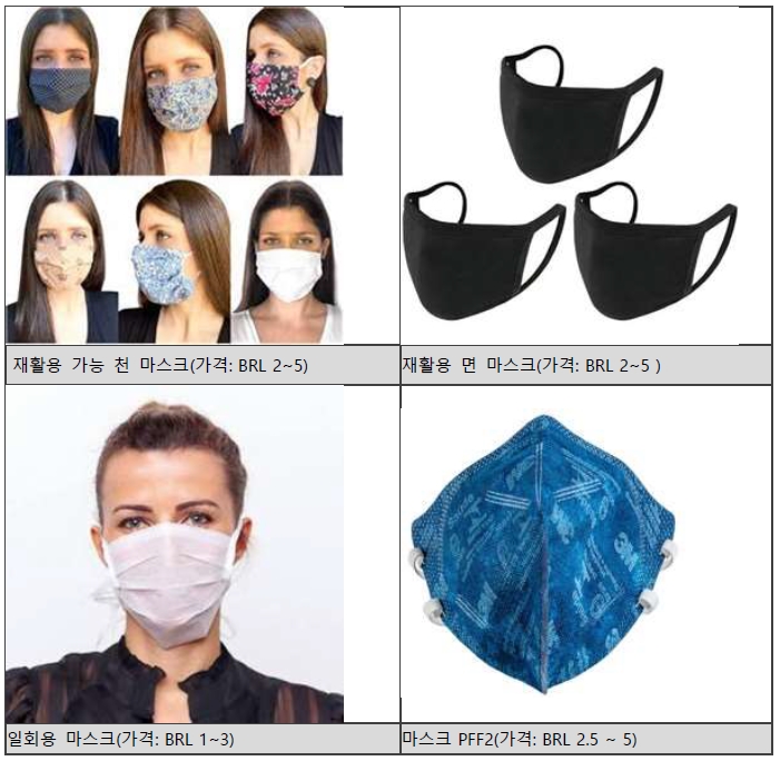 브라질 판매 마스크 종류 및 가격