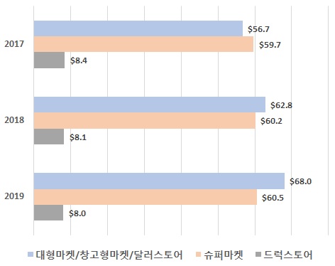 2017~2019년 스토어브랜드 매출 현황 (단위: 10억 달러)