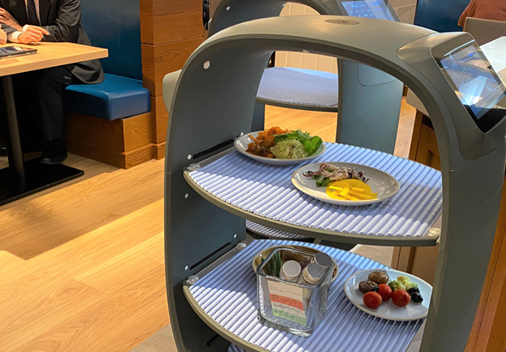샐러드 바를 서빙 로봇으로 대체한 레스토랑