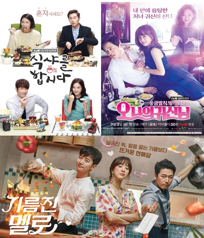 위에서 언급된 ‘사랑의 불시착’, ‘별에서 온 그대’ 등 이외에도 ‘식샤를 합시다(2013)’, ‘기름진 멜로(2018년)’, ‘오 나의 귀신님(2015)’, ‘사랑의 온도(2017)’, ‘신들의 만찬(2012)’ 등 맛난 한식 먹거리들이 등장했던 드라마들이 다수 있다.