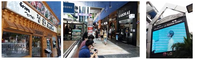 한식진흥원에서 2019년에 실시한 조사에 따르면, 방콕에는 180개 이상의 한식당이 영업 중인 것으로 집계된다. 태국 방콕 수쿰빗 쏘이12지역에 위치한 ‘수쿰빗 플라자’는 정식 명칭보다는 ‘코리아 타운’이라는 비공식 명칭으로 더 유명한 한식당 밀집 지역이다. 수쿰빗 플라자는 한국 식당뿐만 아니라 나이트클럽, 한국 슈퍼마켓, 미용실, 한의원 등이 위치해 있는데 최근에는 한국인 손님보다는 삼삼오오 모여 식사를 즐기는 태국 젊은이들로 북적인다.