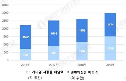 2019년 프리미엄 화장품 판매규모 1518억 위안