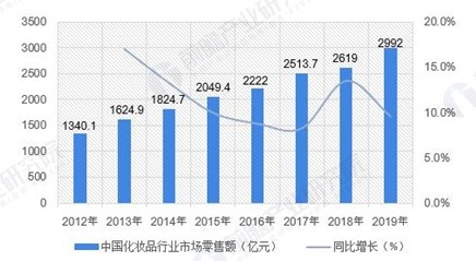 2019년 중국 화장품 시장 소매액은 2992억 위안에 달하며 전년 동기대비 12.6% 증가했다.
