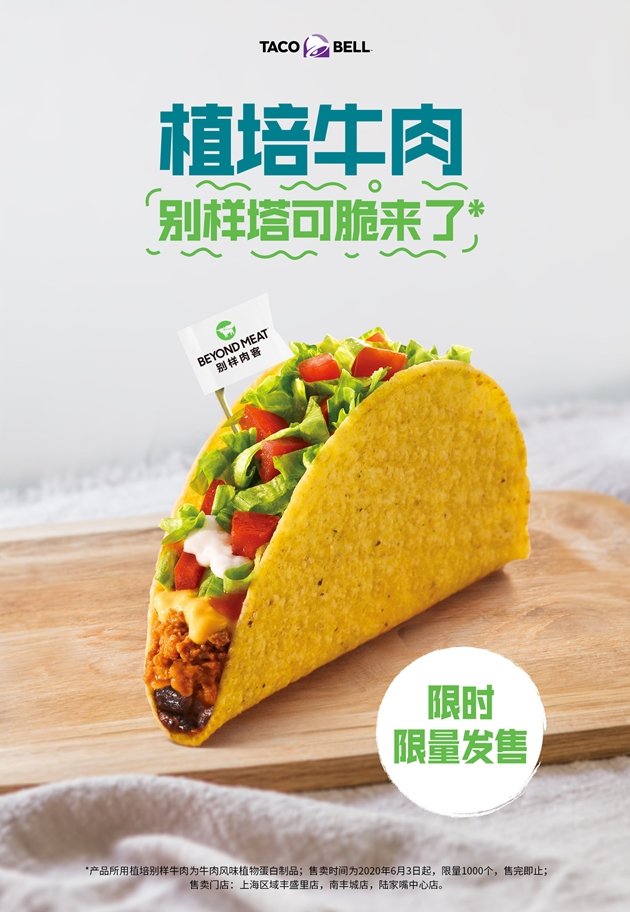 KFC에서는 비욘드버거를 베이징, 청두, 항저우, 상하이의 5개 지역에서 지난 1일부터 3일까지 한정 판매했으며, 피자헛은 6월 8일부터 11일까지 상하이의 6개 매장에 비욘드버거 및 호주등심스테이크버거가 포함된 콤보 세트를 공개했다. 또한, 타코벨은 3일부터 10일까지 상하이의 3개 매장에서 비욘드 버거 패티로 만든 ‘타코’를 제공했다.