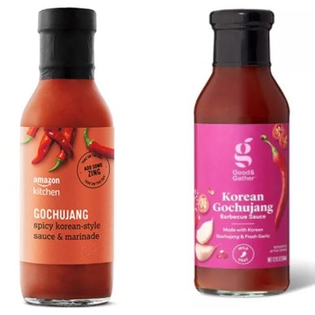 아마존 자체브랜드 아마존 키친 고추장(왼쪽)과 타겟 자체브랜드 굿앤게더 고추장 바비큐 소스