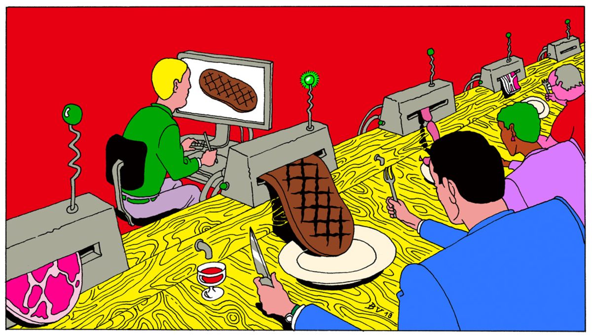 스페인 신생업체 노바미트는 소고기 근육을 통째로 잘라낸 모양과 식감을 세계 최초로 3D 프린팅한 식물성 쇠고기 스테이크를 개발했다고 주장한다.