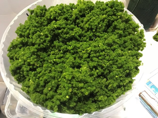 해조류는 '사료'를 필요로 하지 않기 때문에, 생산에는 내부 투입물이 필요하지 않다. 그러나 작물을 고정하고 연결하기 위해서는 해초 양식 장비가 필요하다고 그는 설명했다.