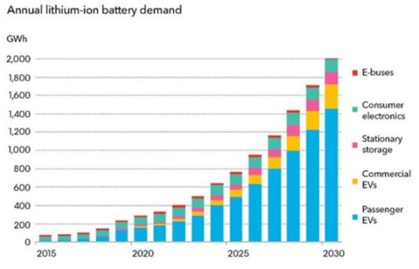 2030년 이후의 시장 전망은 훨씬 더 인상적이다. 대중 교통 및 상업용 교통 수단을 새 배터리로 전환하려면 배터리 생산량을 연간 10,000GW 이상 늘려야 한다.