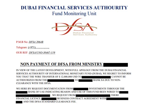 DFSA 언론 보도에 따르면 관련된 사기꾼들은 UAE의 다른 두 정부 당국과 함께 이 기관을 사칭했다.