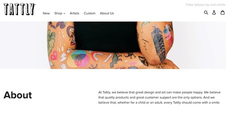 많은 디자인 중심 브랜드가 실제 아티스트의 디자인을 소싱하지만, 태틀리는 이 사실을 비즈니스에 전면에 내세웠다. 타투만큼이나 타투를 디자인한 아티스트도 판매 제품의 일부이며, 사이트 내 아티스트와 작품 전용 섹션에 아티스트의 프로필이 눈에 띄게 정리되어 있다.