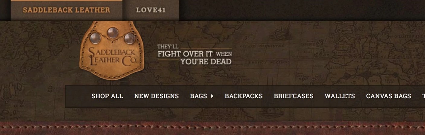 새들백 레더 사이트에서 가장 먼저 눈에 띄는 것 중 하나는 유명한 슬로건이다: " 네가 죽으면 그들은 그것 때문에 싸울 거야!" [“They’ll fight over it when you’re dead.”]