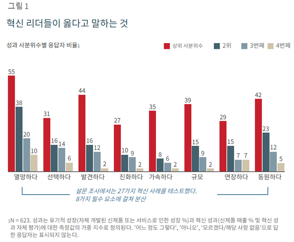 성공적인 대기업 혁신가들을 다른 분야와 구분 짓는 것은 전략적 및 조직적 요소이다.