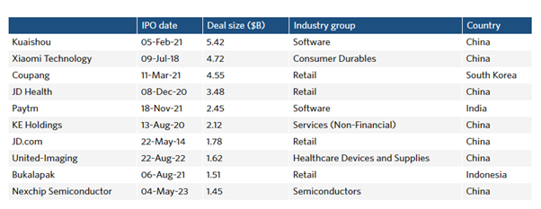 벤처캐피탈의 지원을 받는 아시아 스타트업의 IPO 활동은 5년 전과 비교하면 여전히 비교적 높은 수준이지만, 지난 2년간의 속도에 비하면 상당히 감소했다. 올해 VC의 지원을 받은 아시아 기업이 공개 시장 상장을 통해 약 259건의 엑시트를 진행하여 약 1,270억 달러를 모금했다. 2021년에는 309건의 상장을 통해 3,900억 달러를 모금했다.